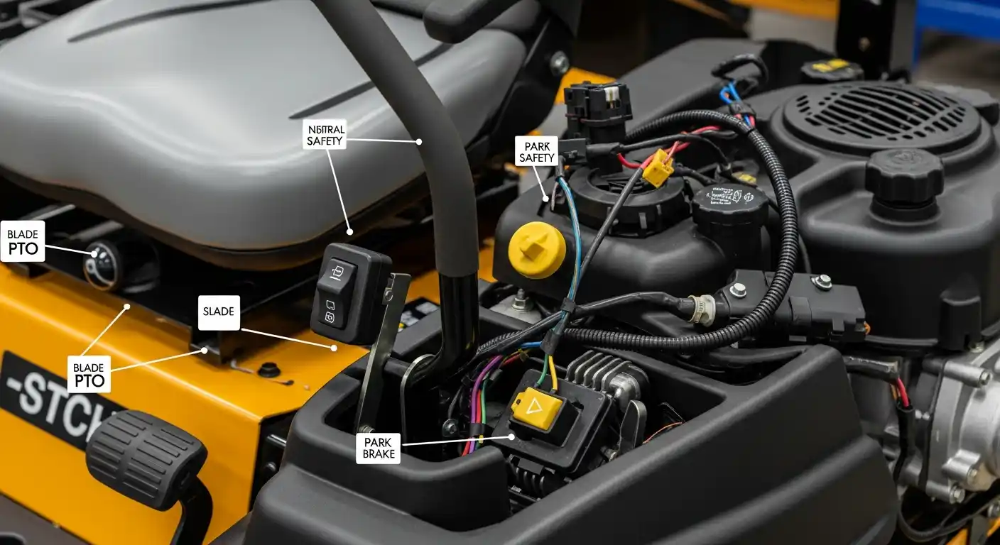 These switches are part of an interlock system. If any one part is open, damaged, or out of position, the mower may stop working. That is why a problem that feels like a starter failure may actually be a switch issue.